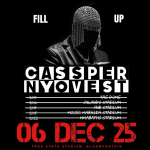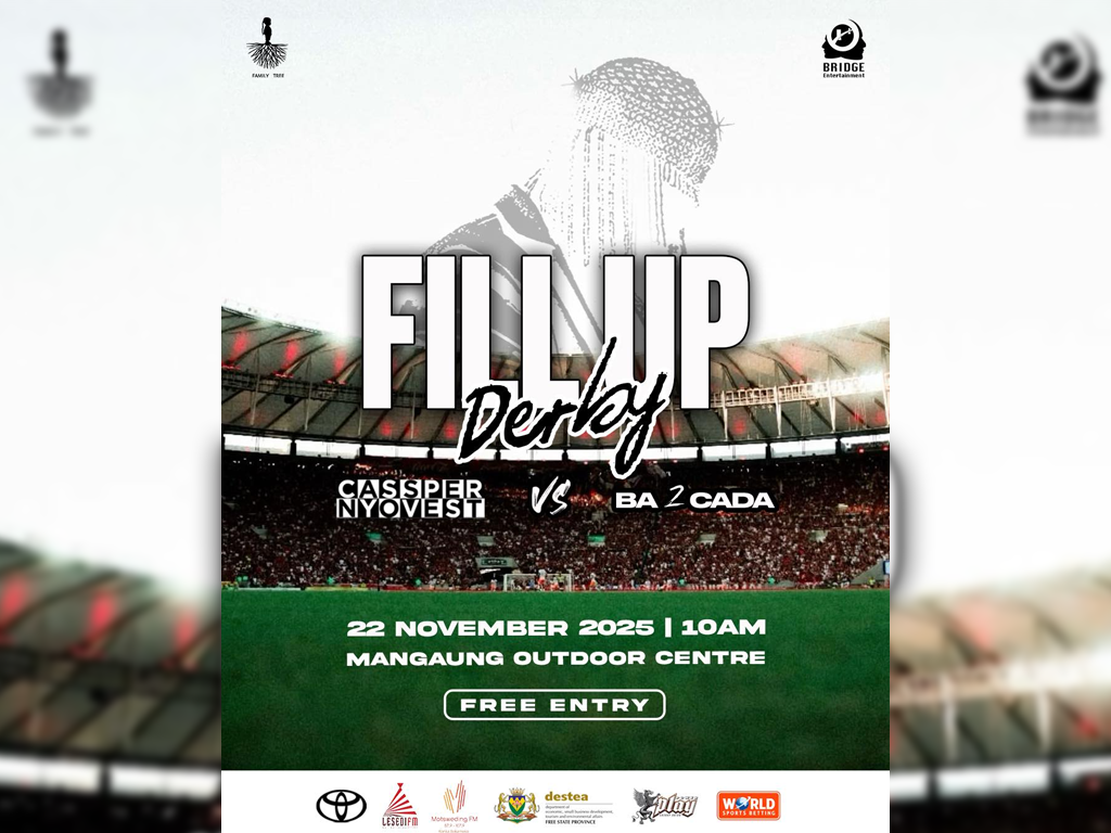 Date: November 22, 2025 Location: Mangaung Outdoor Centre Address: Bloemfontein Ahead of his Fill Up Toyota Stadium on the 6th of December in Bloemfontein, Cassper Nyovest will be hosting the #FillUpDerby this coming weekend on 22 November 2025 at Mangaung Outdoor Centre! from 10 am. Entrance is free! See you there!
